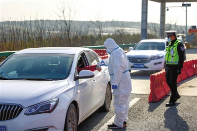1月28日,2021年春運開啟。29日上午,在咸安區(qū)張公高速收費站路口,紅色水碼擺放成指引車道,幾個全副武裝的工作人員正對過往車輛逐一進行排查。遇到外地或中高風(fēng)險地區(qū)來車就指引其到帳篷內(nèi)測體溫、查健康碼等,并詳細(xì)登記對方信息。