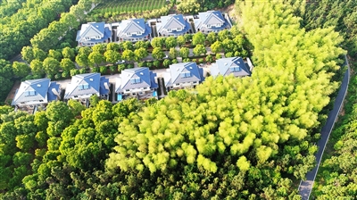 鳥瞰嘉魚縣官橋鎮(zhèn)八組,水波瀲滟的南湖、北湖盡收眼底,讓人賞心悅目;一棟棟造型別致的農民別墅,鑲嵌在綠茵叢中,使人艷羨不已……