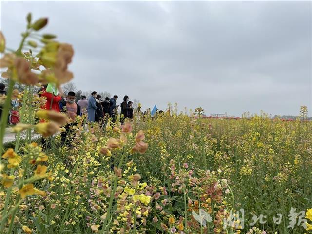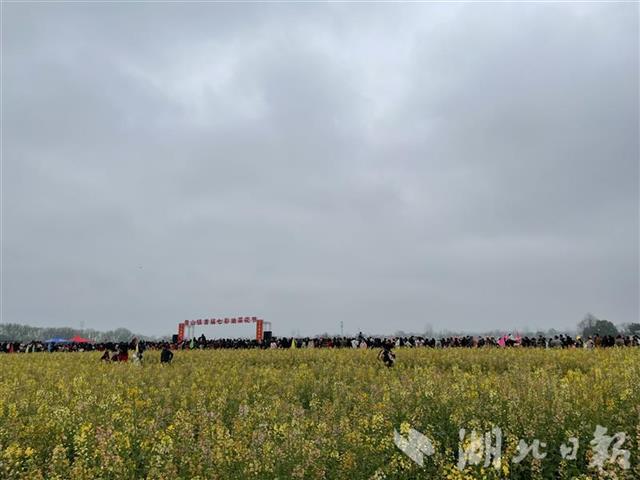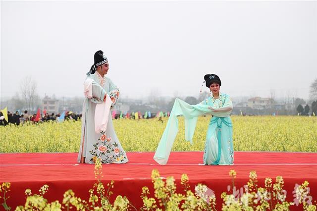 油菜花有普通的黃色、橙黃、桃紅、紫紅等顏色,游客擠在田埂上拍照。青山鎮(zhèn)在菜地里搭起了舞臺(tái),舉辦首屆七彩油菜花節(jié)開幕式,提琴戲、腰鼓等好戲連臺(tái),《我家在崇陽》歌聲在花海中回蕩。