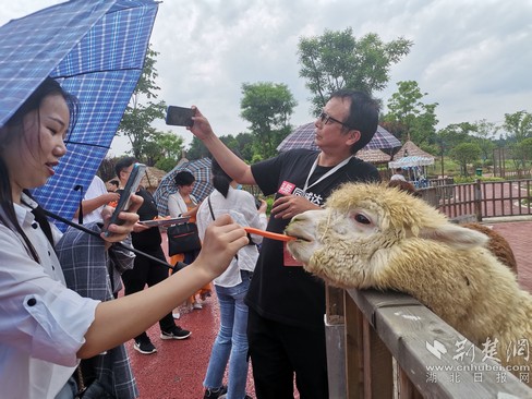 游客用胡蘿卜喂羊駝。通訊員供圖