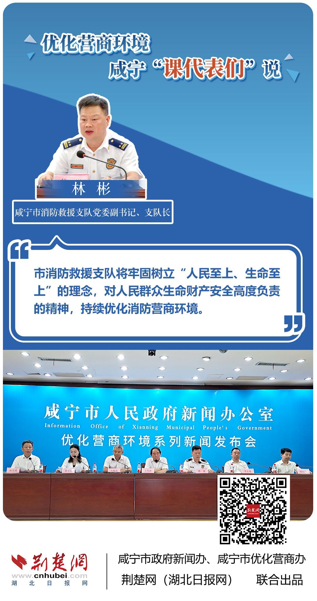 荊楚網(wǎng)(湖北日?qǐng)?bào)網(wǎng))訊(記者 王焱堯 田城 呂鑒蕾 通訊員 張永紅 程蒙)打造寬松便捷的準(zhǔn)入環(huán)境,將服務(wù)部門“一把手”推到窗口,實(shí)行消防行政許可辦理“雙軌制”,加大誠(chéng)信體系建設(shè)和知識(shí)產(chǎn)權(quán)保護(hù)力度……7月20日,咸寧市直單位9名優(yōu)化營(yíng)商環(huán)境發(fā)言人亮相新聞發(fā)布會(huì),圍繞“優(yōu)化營(yíng)商環(huán)境”這一主題,談做法、論經(jīng)驗(yàn)、說打算。