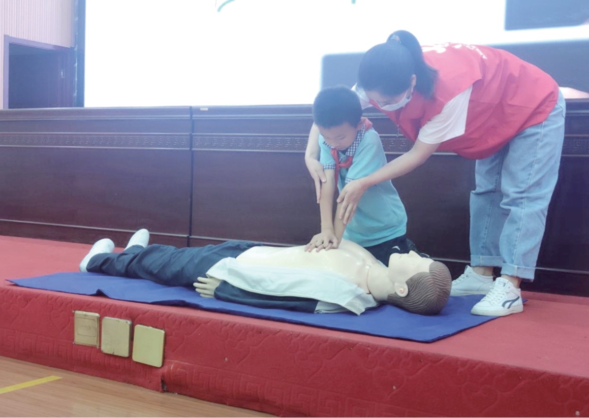 中國紅十字應急培訓師杜成芬為在場學生宣講。杜成芬結合自身經(jīng)歷向大家普及了溺水事件在夏季多發(fā)的原因和高危性。她說,我國15歲以下兒童首要死因是意外事故,而溺水約占6成,溺水后4—6分鐘,身體將遭受不可逆的傷害。