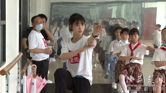 同時(shí),武漢體育學(xué)院新聞傳播學(xué)院暑期社會(huì)實(shí)踐隊(duì)在浠水縣開展了“探尋體育初心·助力鄉(xiāng)村振興” 為主題的“三下鄉(xiāng)”社會(huì)實(shí)踐活動(dòng)。在縣實(shí)驗(yàn)小學(xué)內(nèi),曾榮獲全國青運(yùn)會(huì)武術(shù)套路比賽冠軍的武體學(xué)子連志蘋帶領(lǐng)學(xué)生練習(xí)武術(shù),讓孩子們近距離感受體育的魅力和運(yùn)動(dòng)的快樂。