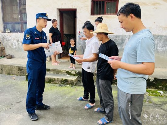 消防員向村民發(fā)放宣傳單頁(yè)。通訊員 供圖