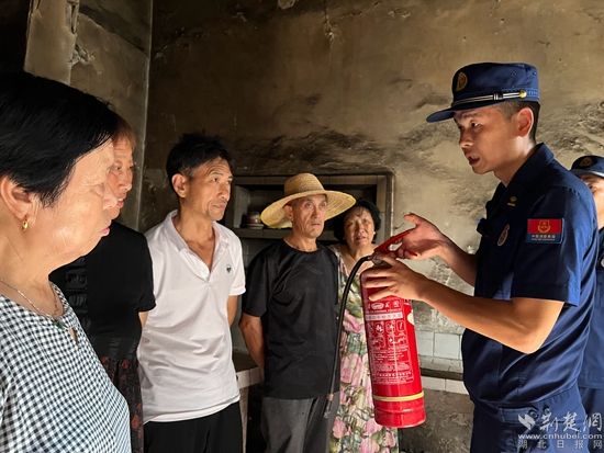 消防員為村民講解滅火器使用方法。通訊員 供圖