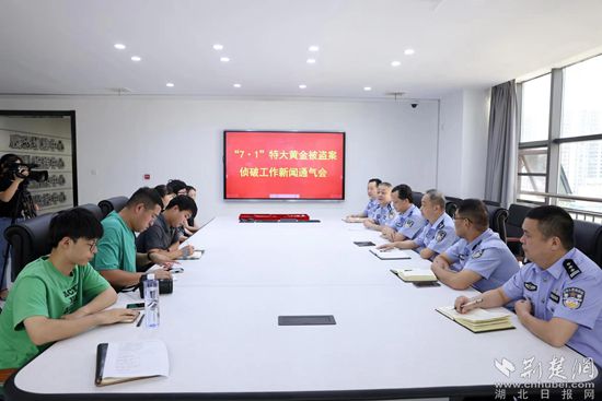 在大冶市公安局召開新聞通氣會,通報相關案情。秦浩攝