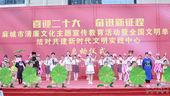 荊楚網(wǎng)(湖北日報網(wǎng))訊(通訊員謝靖)“濯濯清漣,亭亭清蓮,一品清廉,愛蓮,更贊廉?!?月29日,在麻城市清廉文化宣傳教育活動暨全國文明單位結(jié)對共建啟動儀式上,麻城市實驗二小的情景劇《一品清廉》傳來聲聲清脆的倡廉之聲,贏得現(xiàn)場觀眾陣陣掌聲。