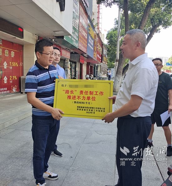 荊楚網(wǎng)(湖北日?qǐng)?bào)網(wǎng))訊(通訊員 許俊孝)陽(yáng)新縣城管局7月22日表示,為著力構(gòu)建城市共建共管、全民共創(chuàng)共享工作新格局,助力新型城鎮(zhèn)化示范縣建設(shè)和國(guó)家文明城市創(chuàng)建,陽(yáng)新縣對(duì)“路長(zhǎng)”和“門前三包”兩項(xiàng)城市眾管工作機(jī)制責(zé)任單位實(shí)施“黃牌”警示制度。目前,已有4家單位因連續(xù)兩個(gè)月考核不達(dá)標(biāo)“榮獲”此牌,并掛牌督辦,另有六家單位獲得“示范單位”金牌榮譽(yù)。