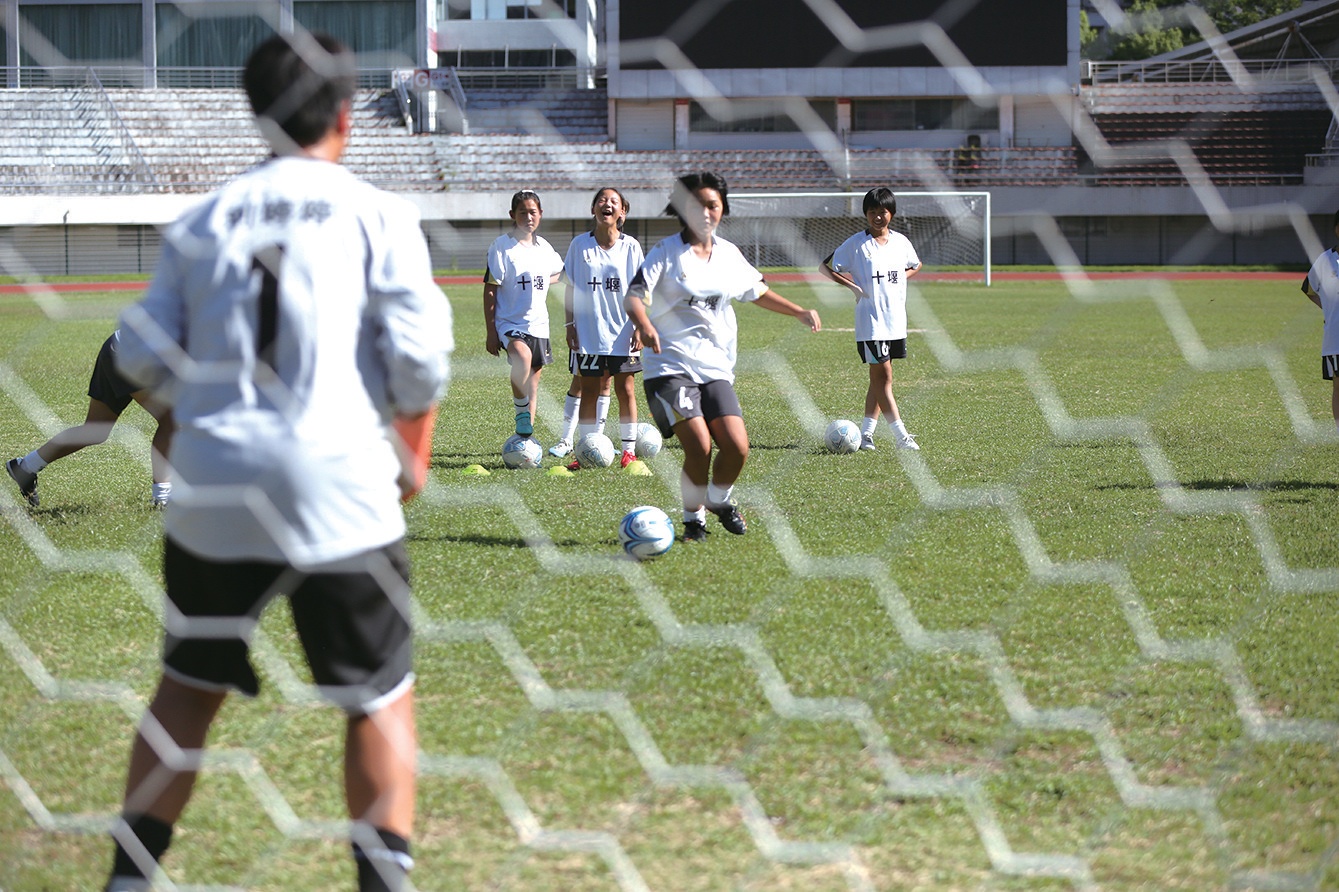 隊員們在訓練場練習射門。