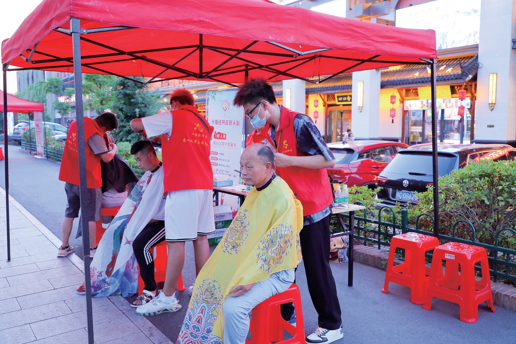 在“好人街”上,志愿者免費為居民理發(fā)。