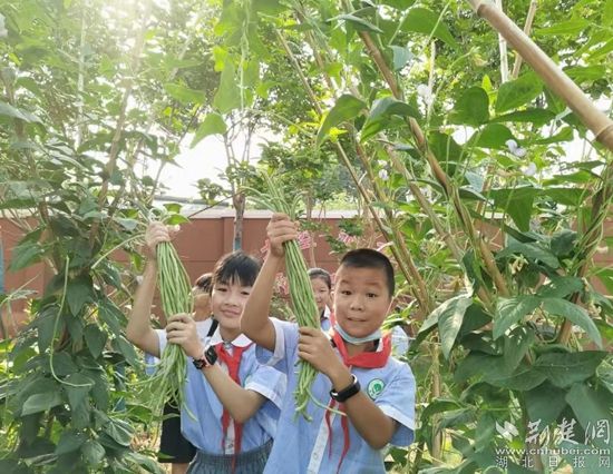 頂著炎炎烈日,聞著泥土的芬芳。鄂州市葛店實驗四年級學生在老師、家長的帶領下走出“空調(diào)房”,到田間地頭開展蔬果采摘活動。只見孩子們伸起胳膊,踮起腳,仰著臉,小心翼翼地從藤蔓上摘下茄子、辣椒、西紅柿、豆角、大蔥、黃瓜等新鮮蔬果,不一會兒,手中的盆、桶就裝得滿滿當當,大家驚喜地歡呼著,個個像凱旋的戰(zhàn)士。