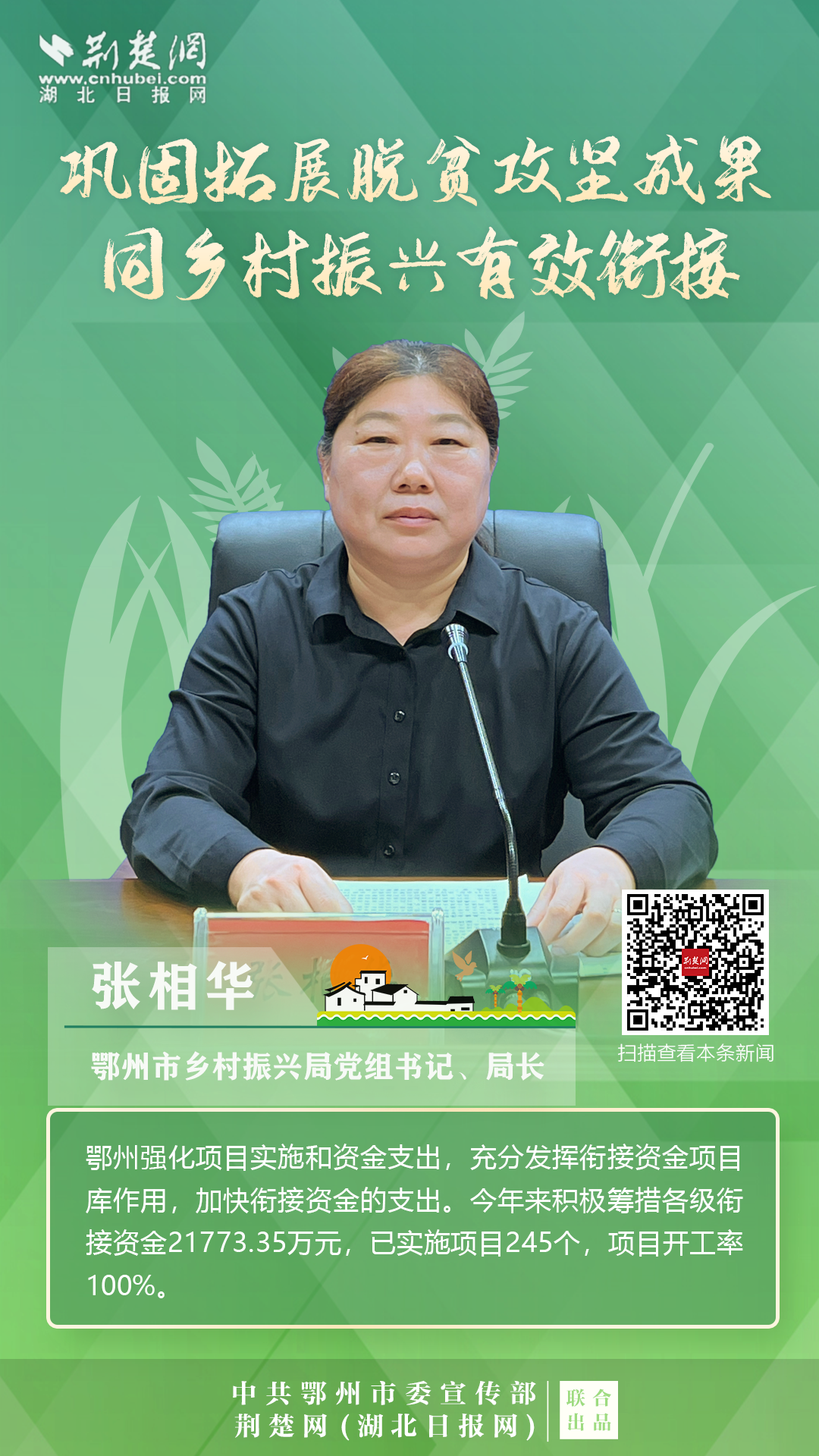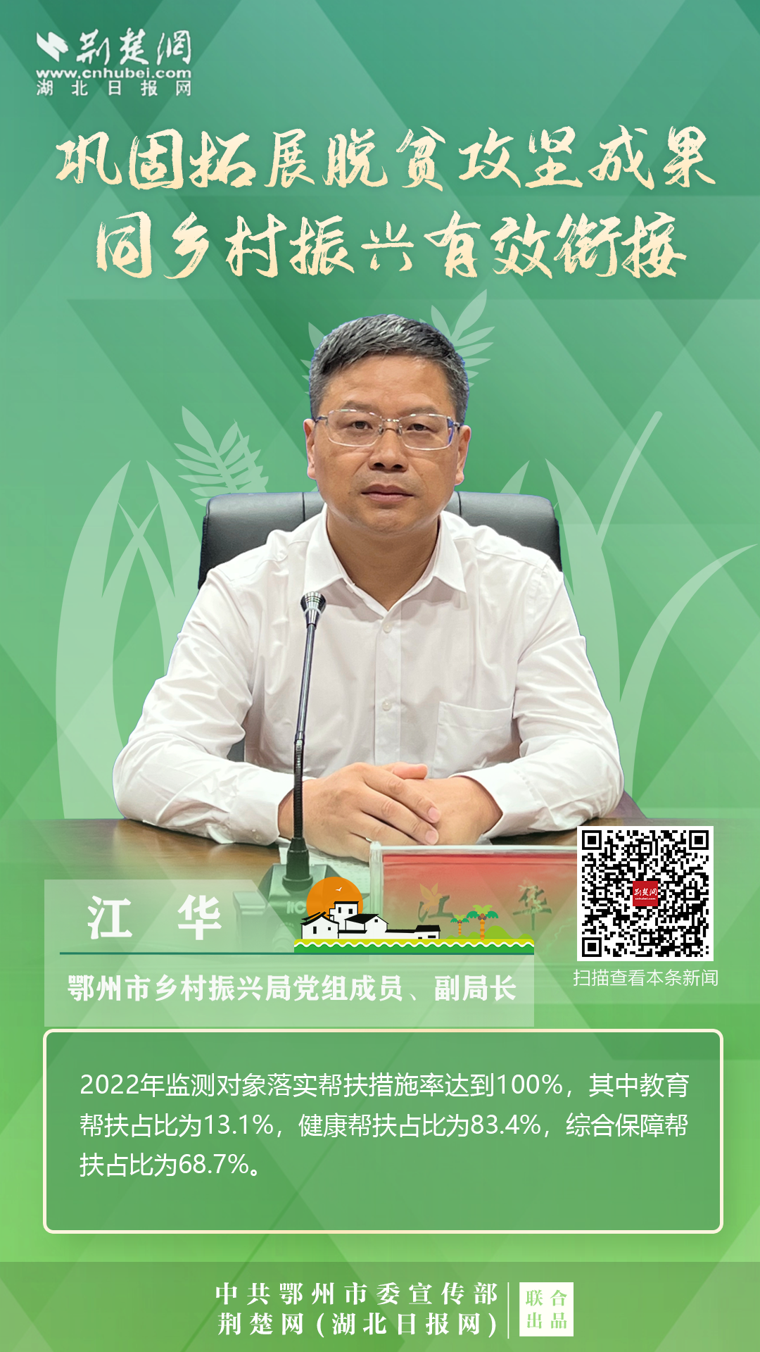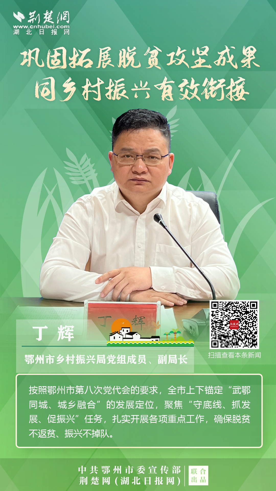 打贏脫貧攻堅(jiān)戰(zhàn)以來,按照鄂州市第八次黨代會的要求,全市上下錨定“武鄂同城、城鄉(xiāng)融合”的發(fā)展定位,聚焦“守底線、抓發(fā)展、促振興”任務(wù),扎實(shí)開展各項(xiàng)重點(diǎn)工作,確保脫貧不返貧、振興不掉隊(duì)。