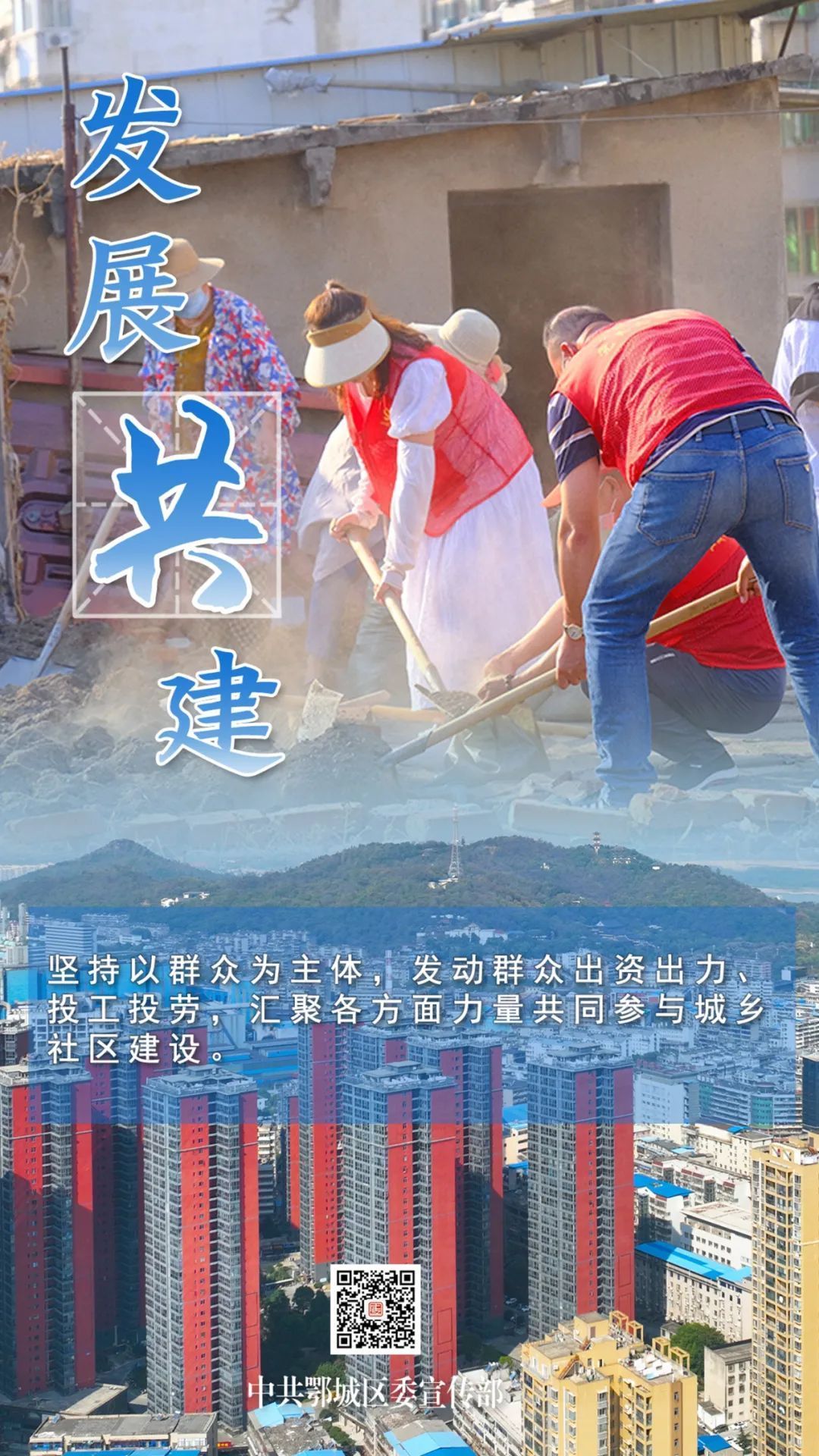 發(fā)展共建:堅持以群眾為主體,發(fā)動群眾出資出力、投工投勞,匯聚各方面力量共同參與城鄉(xiāng)社區(qū)建設(shè)。