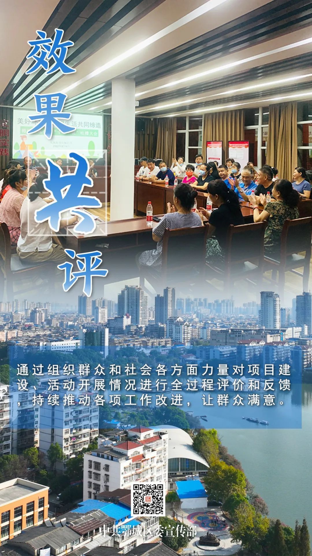 效果共評:通過組織群眾和社會各方面力量對項目建設(shè)、活動開展情況進行全過程評價和反饋,持續(xù)推動各項工作改進,讓群眾滿意。