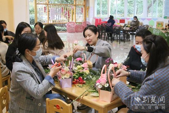 在插花培訓(xùn)環(huán)節(jié),具有豐富插花經(jīng)驗(yàn)的老師為參與者詳細(xì)講授選花、裁剪、顏色搭配、造型等方面的技巧。女職工們在老師手把手地指導(dǎo)下,學(xué)習(xí)插花技藝、陶冶情操,徜徉在“花海”中,充分發(fā)揮自身想象力與創(chuàng)作力,感受插花藝術(shù)的獨(dú)特魅力。