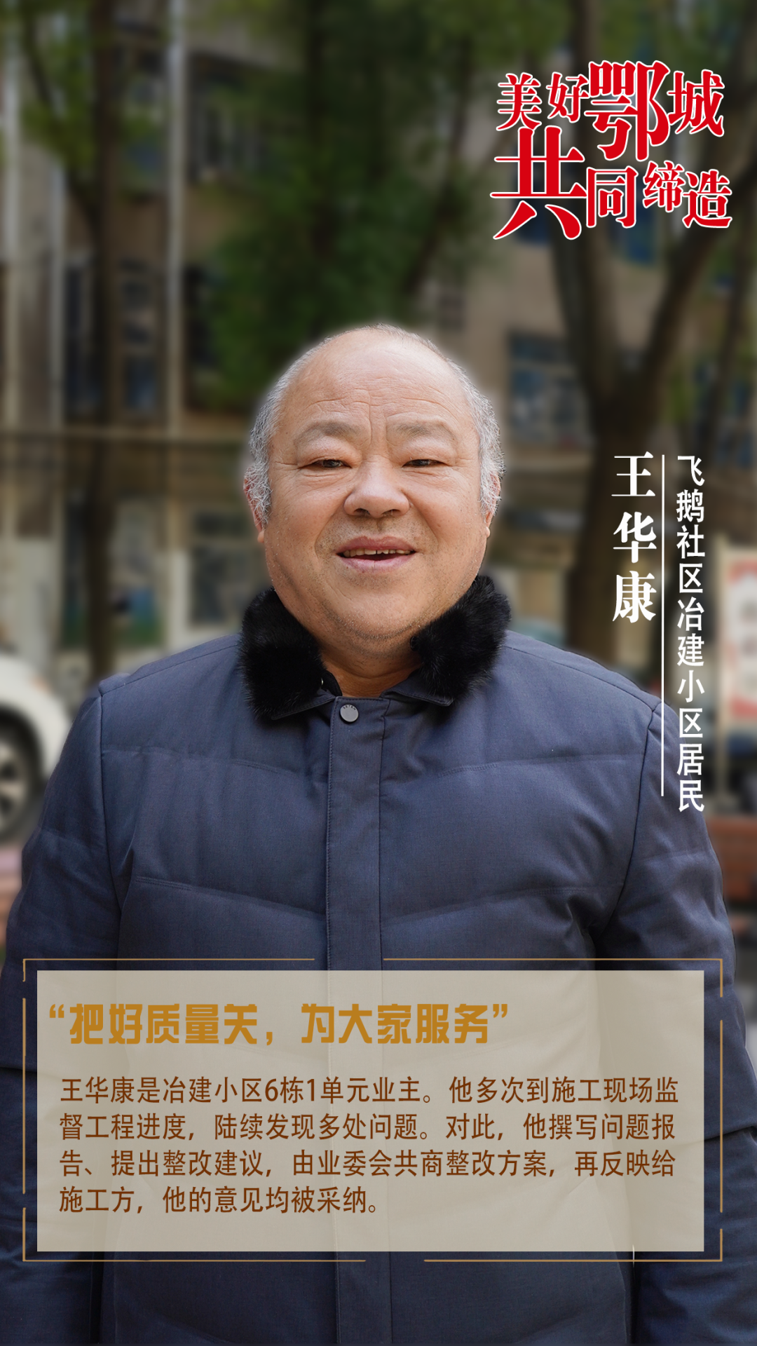 王華康是冶建小區(qū)6棟1單元業(yè)主。他多次到施工現(xiàn)場(chǎng)監(jiān)督工程進(jìn)度,陸續(xù)發(fā)現(xiàn)多處問題。對(duì)此,他撰寫問題報(bào)告、提出整改建議,由業(yè)委會(huì)共商整改方案,再反映給施工方,他的意見均被采納。