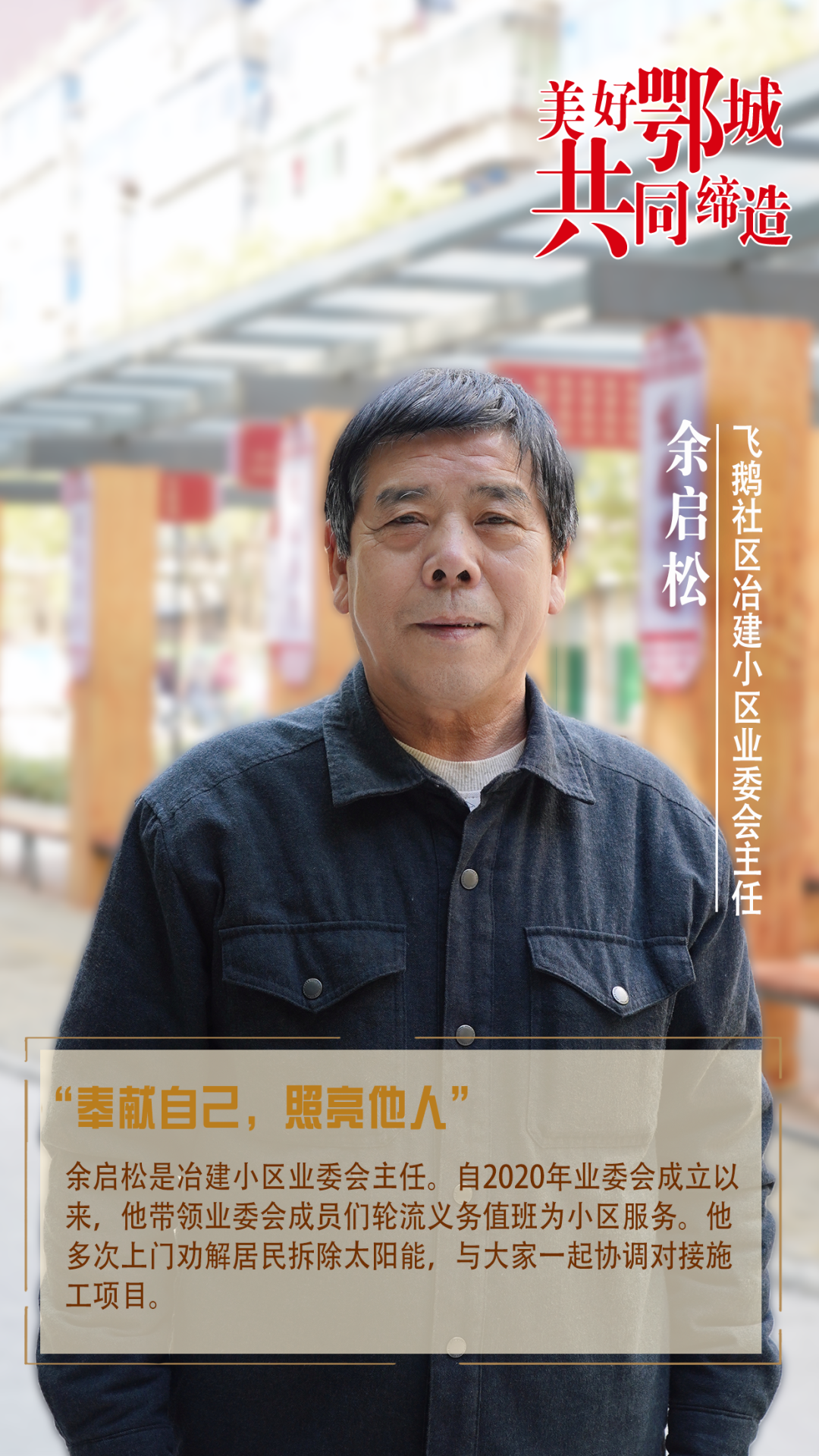 余啟松是冶建小區(qū)業(yè)委會(huì)主任。自2020年業(yè)委會(huì)成立以來,他帶領(lǐng)業(yè)委會(huì)成員們輪流義務(wù)值班為小區(qū)服務(wù)。他多次上門勸解居民拆除太陽能,與大家一起協(xié)調(diào)對(duì)接施工項(xiàng)目。