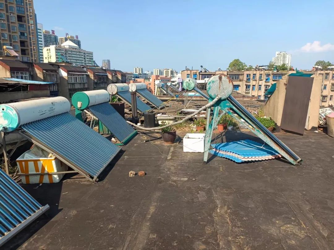 2022年上半年,冶建小區(qū)被納入老舊小區(qū)改造。得知消息后,頂樓居民興奮不已,困擾多年的屋頂滲水問(wèn)題,終于讓他們看到解決的希望。但同時(shí),施工方提出“兩不做”,即樓頂117臺(tái)太陽(yáng)能不拆完不施工,頂層每戶10元/平方米的眾籌費(fèi)不交齊不施工。