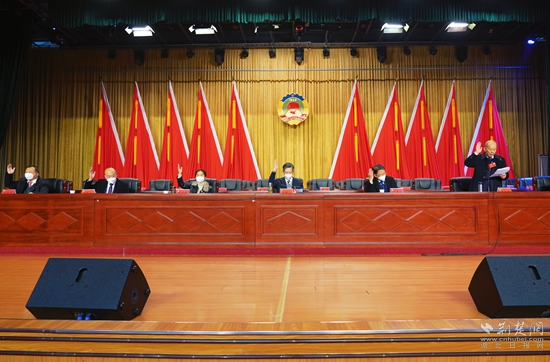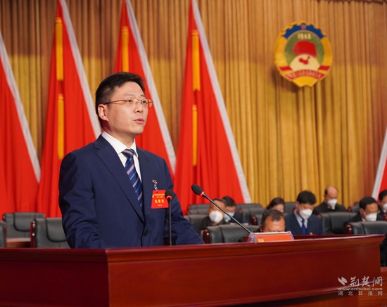 華容區(qū)政協(xié)黨組書記、主席熊枝江作《中國人民政治協(xié)商會議華容區(qū)第九屆委員會常務委員會工作報告》。