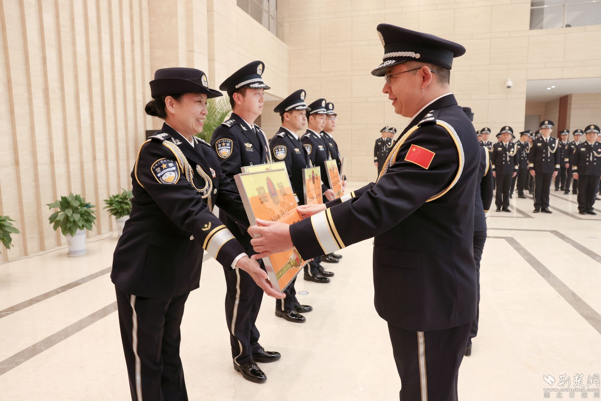 升旗結(jié)束后,市公安局舉行榮譽(yù)儀式,為從警特定年限民警、功模民警、先進(jìn)集體代表頒獎(jiǎng),表彰從警10年、20年、30年、40年民警21人,功模民警12人,榮譽(yù)集體7個(gè)。為進(jìn)一步激發(fā)廣大公安民警職業(yè)榮譽(yù)感、自豪感、歸屬感,本次活動(dòng)還邀請(qǐng)了9名功模民警家屬代表出席參加,共同見(jiàn)證光榮、共同分享喜悅。