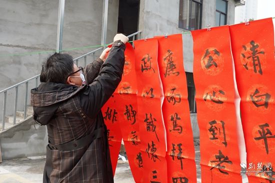 翰墨飄香,迎春納福。3名書法家現(xiàn)場潑墨揮毫,寫春聯(lián)、送福字?!耙簧碚龤飧遗鲇?,兩袖清風(fēng)不染塵”,通過寫“廉”聯(lián),讓新年更添風(fēng)清氣正之色。民間藝術(shù)家們帶來音樂快板《竹板聲聲頌清廉》和廉政楚劇《門道》,在一聲聲“廉”板和“廉”戲聲中,為群眾、干部帶來廉潔文化洗禮。最后,一場老少皆宜的《踩蓮船》表演,讓現(xiàn)場觀眾捧腹大笑、樂不可支。
