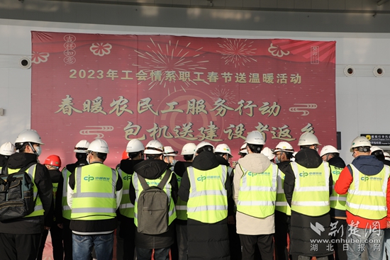 今年送你們回家過春節(jié),明年將再一次迎接你們回來,繼續(xù)建設(shè)、發(fā)展、運(yùn)營花湖機(jī)場,花湖機(jī)場因你們而驕傲,將來你們也一定會(huì)因花湖機(jī)場而驕傲?!痹诂F(xiàn)場,鄂州市委常委、統(tǒng)戰(zhàn)部部長、市總工會(huì)主席夏帆對機(jī)場建設(shè)者代表說。