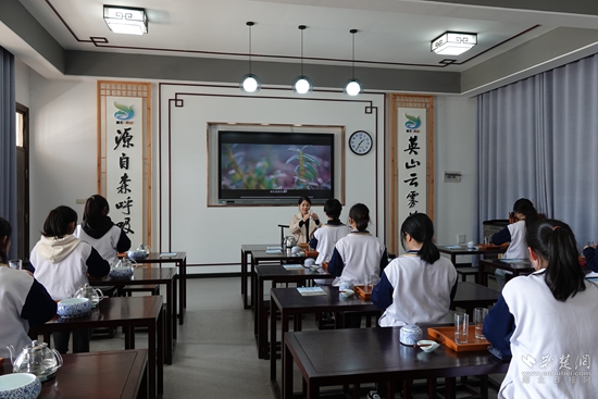 英山地處大別山南麓,是湖北省綠茶主產(chǎn)區(qū)之一。據(jù)悉,英山一中的每位學生在校期間要完成6個課時的茶藝課程,其中3節(jié)課用來學習理論知識,包括茶的起源、分類、中國茶文化,以及基本的茶藝禮儀,另3節(jié)課則進行全套茶具實操訓練,完成一個完整的茶藝表演。