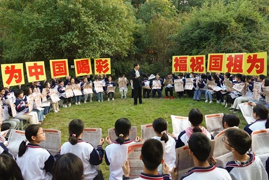 同學們手舉“踔厲奮發(fā) 砥礪前行”“為中國喝彩 為祖國祝福”等標牌互動熱烈。