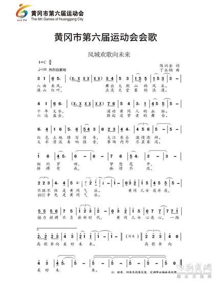 會(huì)歌《鳳城歡歌向未來》,由黃岡籍作家陳訓(xùn)金作詞,黃岡師范學(xué)院青年作曲家丁永鋼作曲。作品主題突出,風(fēng)格清新,節(jié)奏明快、旋律優(yōu)美,催人奮進(jìn)。