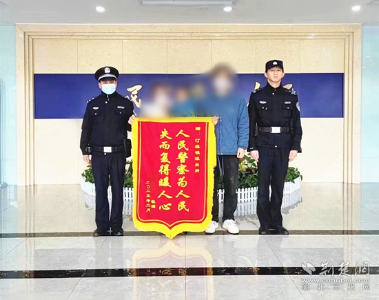 楊女士及家屬向民警送錦旗。通訊員 供圖