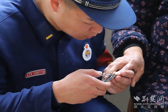 荊楚網(wǎng)(湖北日?qǐng)?bào)網(wǎng))訊(通訊員 黃消宣)在第60個(gè)學(xué)雷鋒紀(jì)念日來臨之際,黃石市消防救援支隊(duì)大冶大隊(duì)走進(jìn)華祺老年公寓開展“學(xué)雷鋒、送溫暖、獻(xiàn)愛心”活動(dòng)。為老人修剪指甲、聊天解悶,講解應(yīng)急科普知識(shí)……“火焰藍(lán)”用實(shí)際行動(dòng)為老人們送去溫暖和祝福,養(yǎng)老院內(nèi)歡聲笑語此起彼伏。