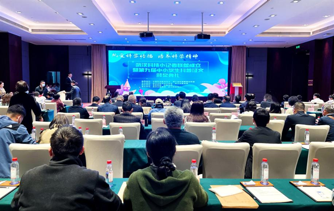 嘉賓為武漢市第一初級(jí)中學(xué)、漢陽一中、武漢市第四十九中學(xué)、華中科技大學(xué)附屬小學(xué)、吳家山第四小學(xué)、惠濟(jì)路小學(xué)等6家首批獲得武漢科技小記者站的學(xué)校授牌。