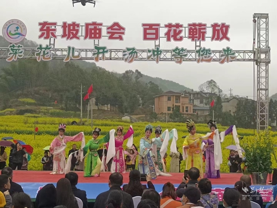 為持續(xù)推動(dòng)?xùn)|坡廟會(huì)文化品牌在蘄春落地生根,該縣堅(jiān)持以文塑旅、以文塑城、以旅彰文、以文化人工作導(dǎo)則,蘄春縣委宣傳部以“東坡廟會(huì)·百花蘄放”為載體,從群眾需求出發(fā),傾力打造覆蓋城鄉(xiāng)10場(chǎng)特色文化活動(dòng)和12場(chǎng)文藝宣講活動(dòng),不僅豐富了群眾的精神文化生活,也讓群眾在觀看節(jié)目的同時(shí),了解黨的政策、聆聽黨的聲音,真正將文化惠民、服務(wù)百姓落到實(shí)處。