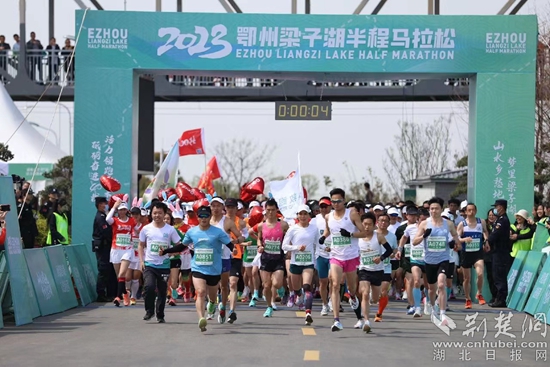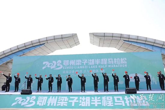 2023鄂州梁子湖半程馬拉松開(kāi)跑時(shí)刻。通訊員 供圖
