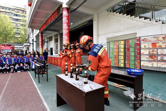 原來,當(dāng)天黃石港區(qū)消防救援大隊在廣場路小學(xué)開展了一場別開生面的消防安全“進校園”疏散演練活動。