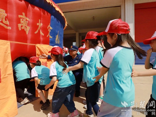 隨后,消防員邀請小朋友們試穿心儀已久的消防叔叔“同款服裝”,并利用充氣式的“逃生帳篷”,模擬真實的火災現場。在消防員的指導下,孩子們一個個捂住口鼻,扶著墻壁彎腰鉆進帳篷里,開始了一場“沉浸式”火場逃生。