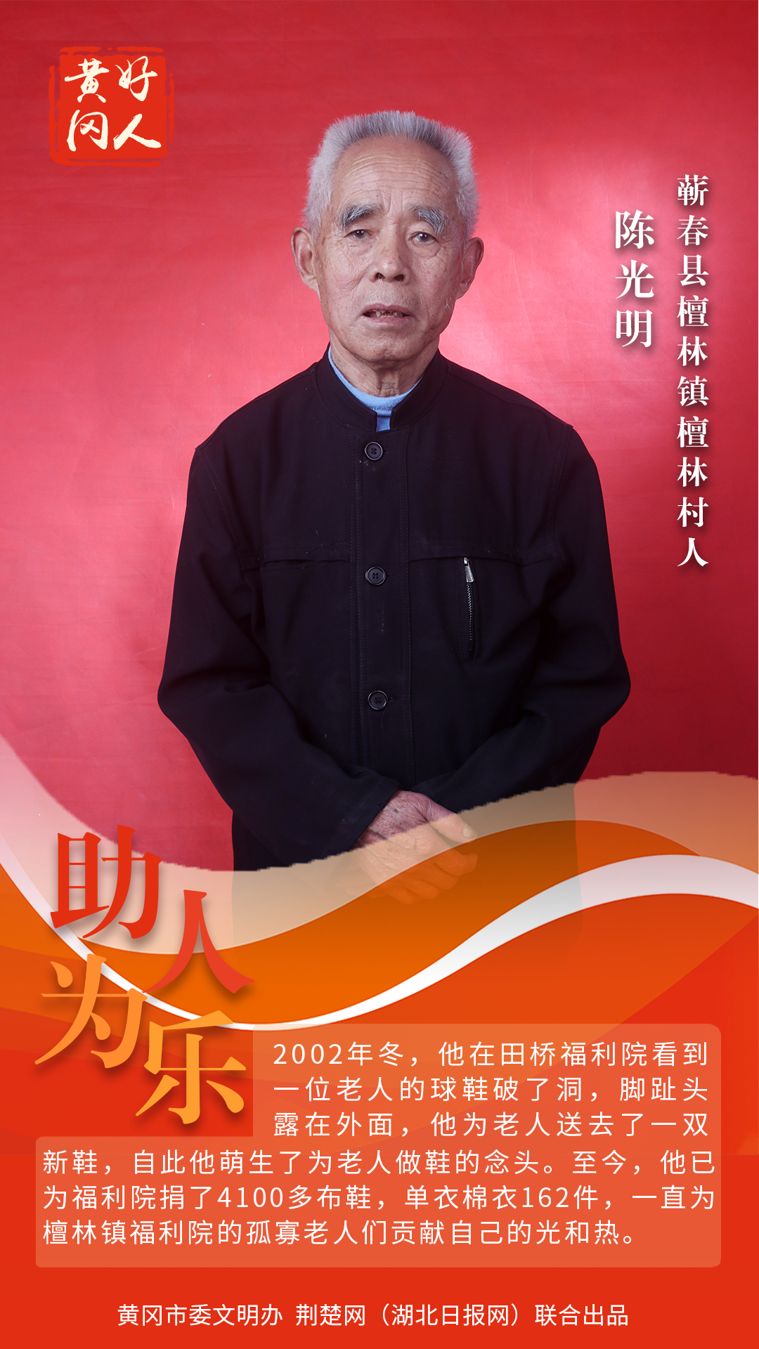 本期“黃岡好人”共有5組好人入選。他們中有“助人為樂、樂善好施”的陳光明;有“敢打硬仗、熱衷公益”的楊志謀;有“危難時刻顯身手”的杜友福;有“海歸博士變身田間耕夫”的潘新星;有“35年堅守,照顧殘障村民如至親”的朱自學(xué)、王桂珍夫婦。