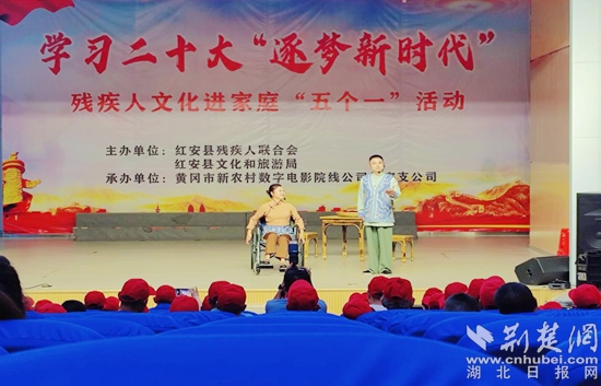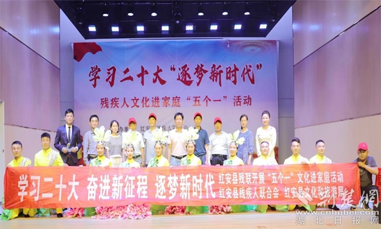 荊楚網(wǎng)(湖北日報網(wǎng))訊(通訊員程應(yīng)良)5月21日,紅安縣殘疾人聯(lián)合會、紅安縣文化和旅游局聯(lián)合舉辦“學(xué)習(xí)二十大 逐夢新時代”為主題的第二期殘疾人文化進家庭“五個一”活動,幫助殘疾人朋友游一次園、參觀一次展覽、讀一本書、參加一次文化活動、看一場電影。