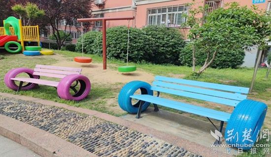 荊楚網(wǎng)(湖北日報網(wǎng))訊(通訊員 丁元中)近日,鄂城區(qū)西山街道石山社區(qū)觀瀾花園小區(qū),經(jīng)過創(chuàng)意涂鴉,廢舊輪胎“搖身一變”,成了一個個色彩斑斕的彩色衣裳,不少兒童正在輪胎搭建而成的滑梯、蹺蹺板、秋千等娛樂設(shè)施上面玩耍。一旁的健身器材上,一些老人正在鍛煉身體,原來空無一物的休閑廣場已成為一個廣受居民歡迎的新去處。