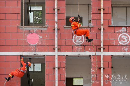 此次比武競賽活動(dòng)設(shè)置有5000米跑、4×400米接力、4×100米游泳接力、繩索攀爬、負(fù)重登10樓、攀登15米金屬拉梯操和業(yè)務(wù)理論考試七個(gè)項(xiàng)目。