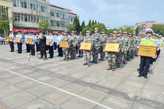 來(lái)自樓街道執(zhí)法中心、3個(gè)物業(yè)公司、3個(gè)股經(jīng)社和街道輔警8支隊(duì)伍,共80名執(zhí)法隊(duì)員參加會(huì)操比武。