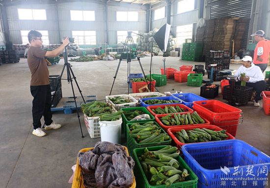 荊楚網(湖北日報網)訊(通訊員尹宏偉)6月27日,黃州區(qū)堵城鎮(zhèn)葉路洲余嶺村的湖北福耕生態(tài)農業(yè)發(fā)展有限責任公司蔬菜分揀倉庫里,公司負責人吳易翔正對著鏡頭,賣力地通過抖音直播帶貨。