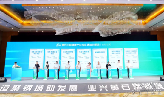 現(xiàn)場共簽約項(xiàng)目23個(gè),總投資139.1億元,并為黃石生命健康產(chǎn)業(yè)協(xié)會授牌。