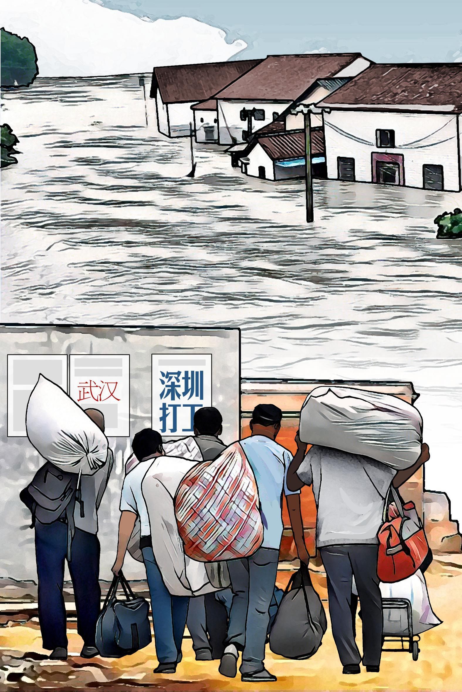 1996年至1998年,三年水患,許多村民顆粒無(wú)收、血本無(wú)歸。連年歉收后,鄉(xiāng)親們逐漸對(duì)種田失去信心。不少村民賣(mài)掉耕牛,閉門(mén)鎖戶,前往廣州、深圳、武漢等地打工。