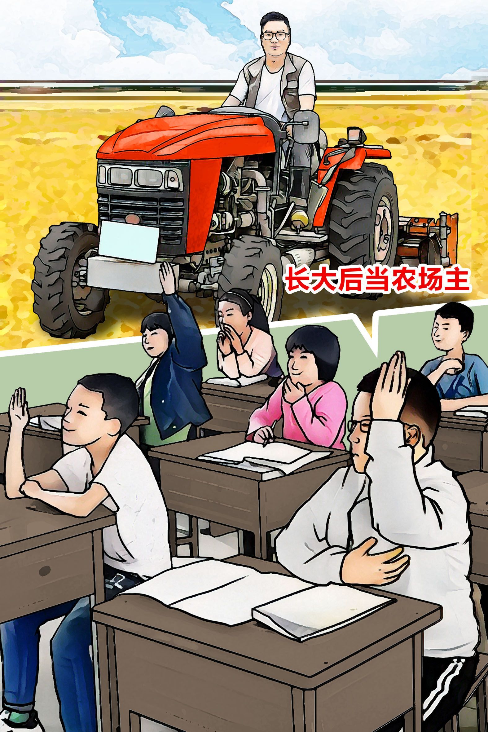 課堂上,語(yǔ)文老師問(wèn)大家,長(zhǎng)大后的理想是什么?同學(xué)們紛紛舉手發(fā)言,有的要當(dāng)將軍,有的要當(dāng)教授,有的要當(dāng)運(yùn)動(dòng)員,有的要當(dāng)書(shū)法家……陳川則回答“長(zhǎng)大后要當(dāng)農(nóng)場(chǎng)主”。老師不僅沒(méi)有批評(píng)陳川,反而表?yè)P(yáng)了他?!耙?dāng)新時(shí)代的農(nóng)場(chǎng)主”,一顆小小的種子從此在陳川心中埋下。