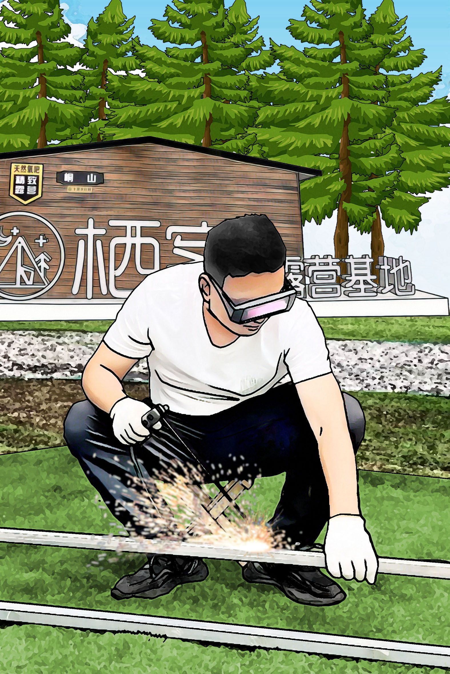 2022年8月,陳川正式與峒山村簽約,投資300萬(wàn)元,在十里水杉林建設(shè)棲客露營(yíng)基地。在基地建設(shè)過(guò)程中,陳川既是老板也是員工,設(shè)計(jì)圖紙,搬運(yùn)器材,焊接構(gòu)件……幾乎什么活兒都干??吹竭@個(gè)后生如此上進(jìn),熱心的村民們紛紛前往工地幫忙。