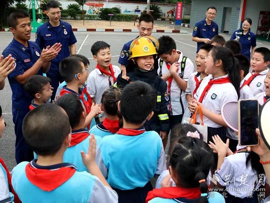 荊楚網(wǎng)(湖北日報(bào)網(wǎng))訊(通訊員 張承妹)25日,黃石市消防救援支隊(duì)下陸大隊(duì)舉辦營區(qū)“開放日”活動,來自白馬山小學(xué)和有色小學(xué)的70余名小朋友在老師陪同下走進(jìn)營區(qū),暢享了一次特殊的暑期“消防之旅”。