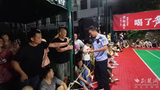 “當(dāng)今社會,電信網(wǎng)絡(luò)詐騙‘花樣百出’,騙術(shù)層出不窮,不明鏈接千萬別點(diǎn)開,小利誘惑一定要警惕……”8月13日晚,在銅鐘鄉(xiāng)“村BA”籃球賽現(xiàn)場,銅鐘派出所民輔警利用中場休息時(shí)間耐心地給現(xiàn)場觀賽群眾講解防詐騙知識。