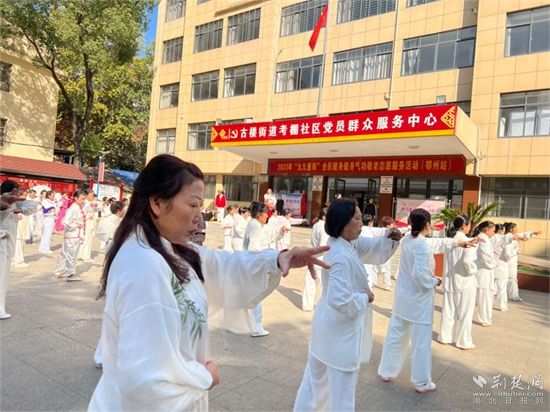 此外,開幕式當(dāng)天時(shí)值“九九重陽(yáng)節(jié)”,為推進(jìn)老年人身體健康,國(guó)家體育總局健身氣功管理中心特聘請(qǐng)賽事裁判長(zhǎng)、武漢體育學(xué)院武術(shù)學(xué)院賈海如副教授,在鄂州市考棚社區(qū)開展2023 年“九九重陽(yáng)”全民健身健身氣功敬老志愿服務(wù)活動(dòng)。