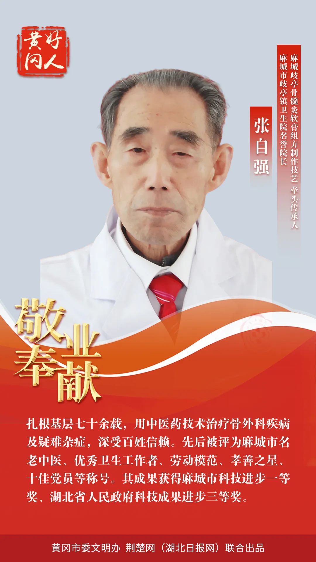 本期“黃岡好人”共有5組好人入選。他們中,有“見義勇為,勇救落水者”的秦遵照;有“扎根基層七十余載老醫(yī)”的張自強(qiáng);有“孝老愛親,待叔如父,被譽(yù)為大山里‘好兒媳’”的丁衛(wèi)香;有“助人為樂,從事志愿服務(wù)30余年的”的汪天明;有“助人為樂,創(chuàng)建了‘向陽花’留守兒童之家品牌”的張靜。